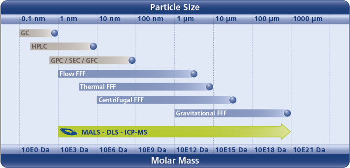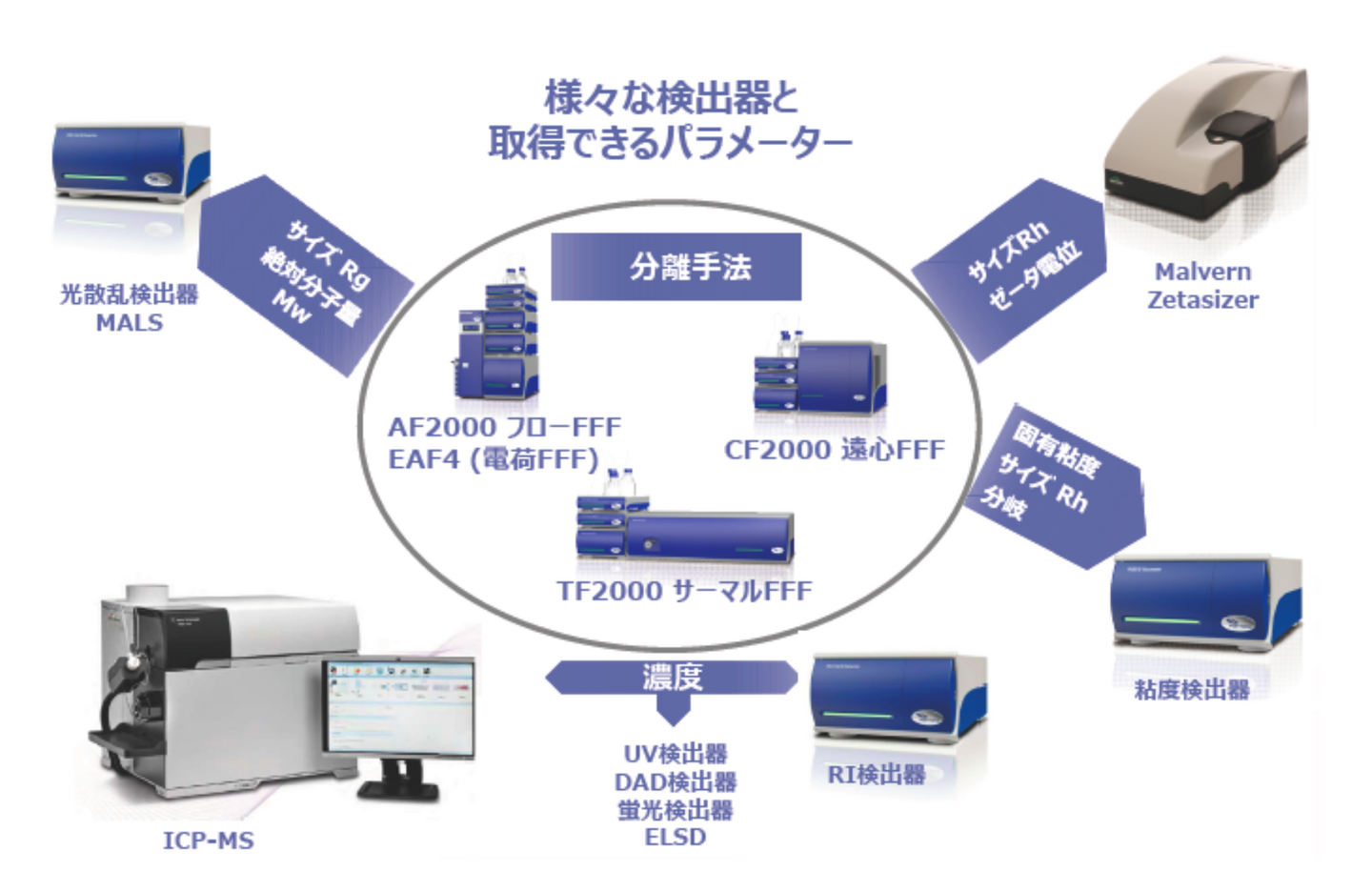 AF2000 プラットフォームは、分子と粒子を1nmから数μmの範囲まで分離できます。