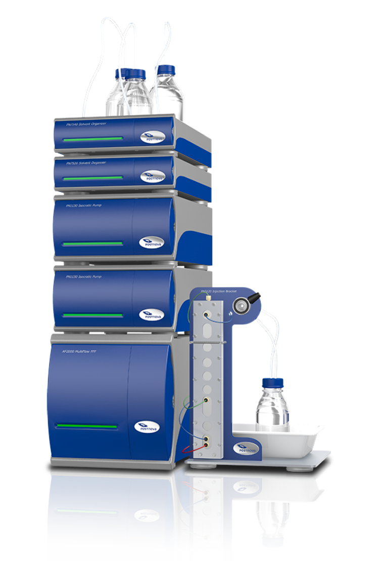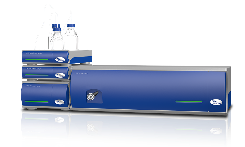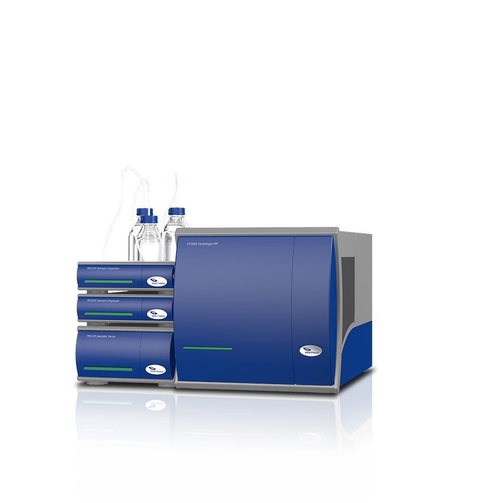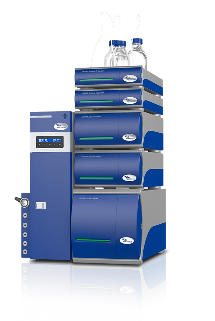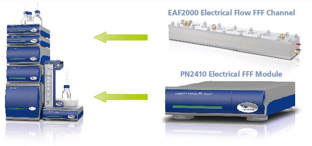 Postnova社EAF4 テクノロジーは、電荷フローFFF と非対称フローFFF の原理を 1 つのシステムに組み合わせています。