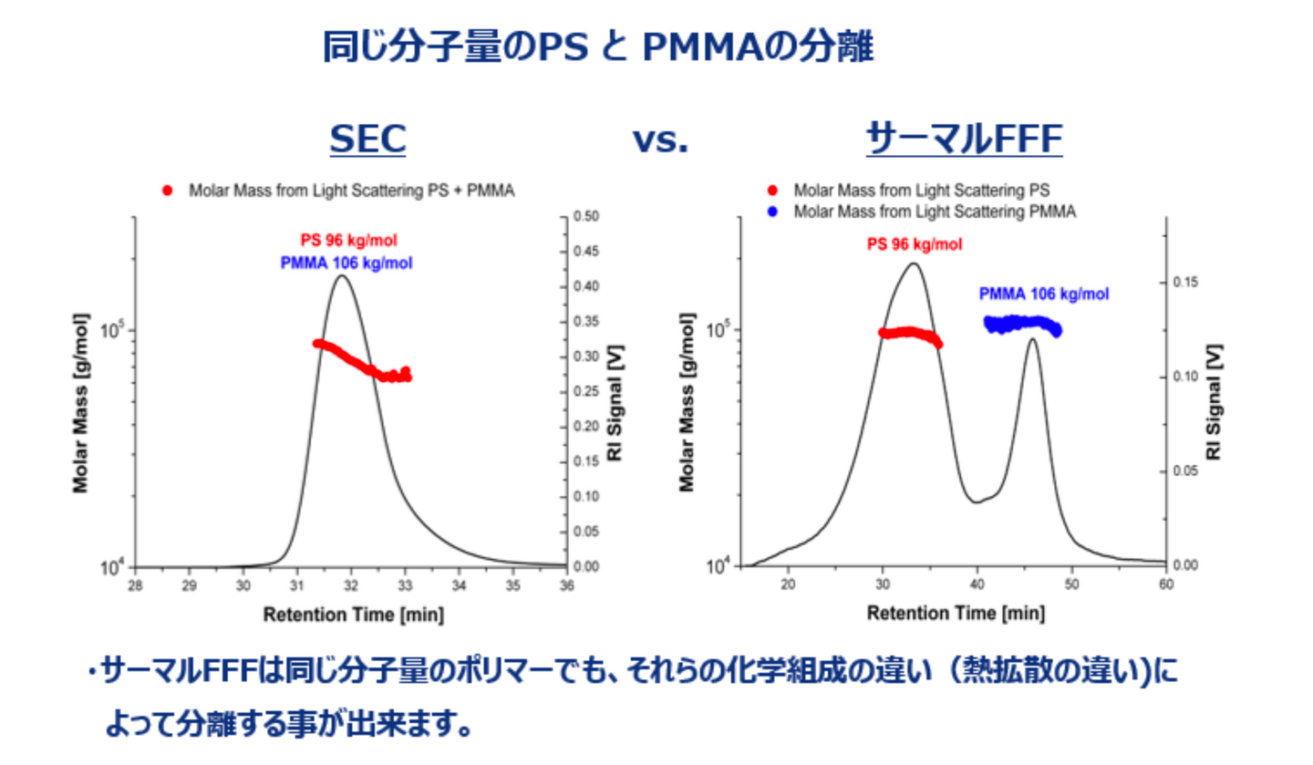 このフィールドの影響を受けるポリマーは、モル質量と化学組成の両方に基づいて熱拡散によって分離されます。