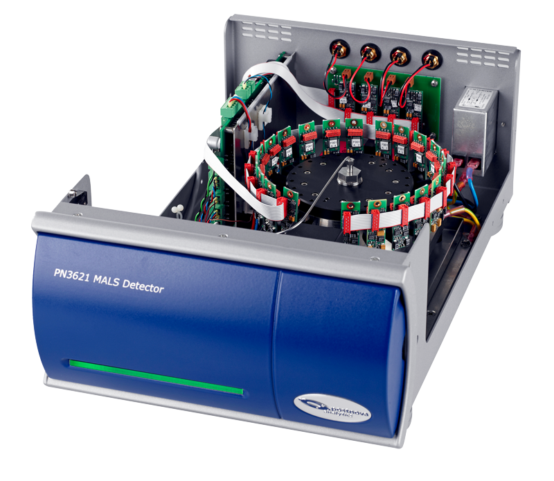 20年以上の実務経験に基づいて、Postnova社はレーザー光散乱の分野で独自の能力を蓄積し、独自のPN3621 MALS(多角度光散乱検出器) を開発しました。