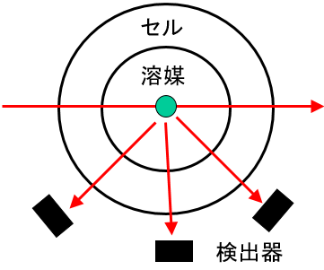 - どの散乱角度でも、散乱光はセル面から垂直に出射するので、散乱光を効率よく受光可能です。