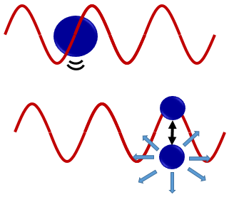 光が分子に当たると、分子は振動し双極子が誘発し、その光と同じ波長で散乱(レイリー散乱)します。