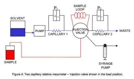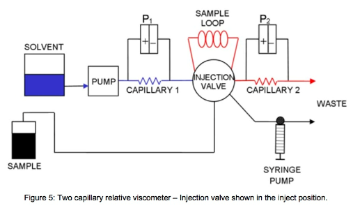 温度変動や溶媒の変動によるエラーを回避します。 - デュアル キャピラリー粘度計は、ポアズールの法則 [6] の基本原理に基づいて動作します。
