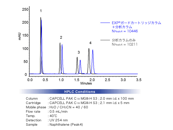 カラム直結タイプのガードカートリッジカラムのため、カートリッジカラム装着によるデッドボリュームの影響は認められません。 |