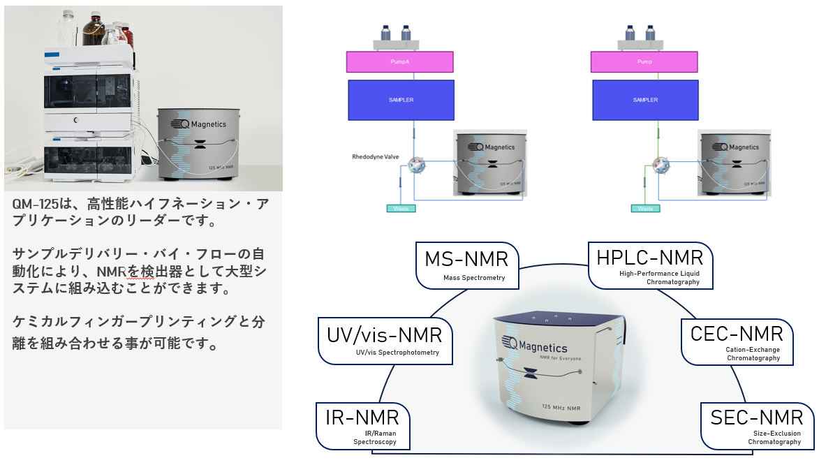 卓上型NMRの設計と市場において、40年以上の経験をもち、2021年から125MHz(3T)の高分解能卓上型1H NMR分光計・QM-125の販売を開始しております。