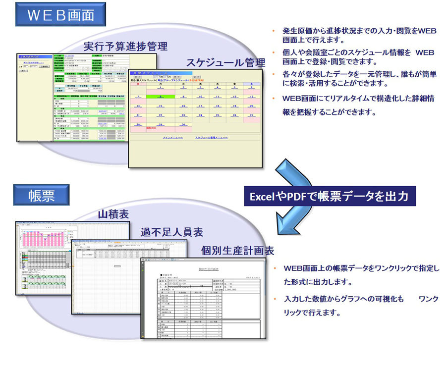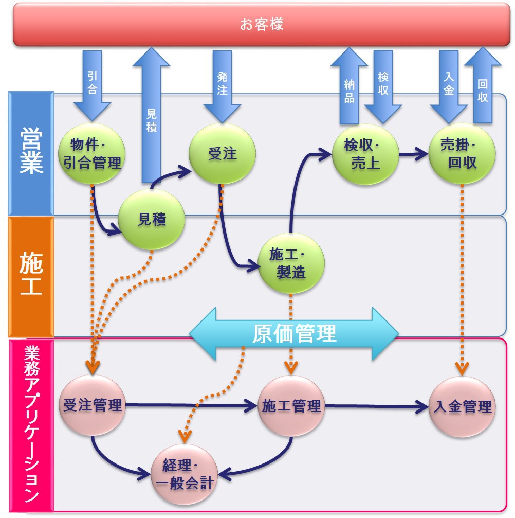 「業務管理アプリケーション」は、案件管理から入金管理までの業務をサポートするWEBアプリケーションです。 業務を効率化するとともに、権限者ごとに経営情報を簡単に登録・閲覧することができます。 お客様のニーズに合わせてカスタマイズしたアプリケーションを提供します。
